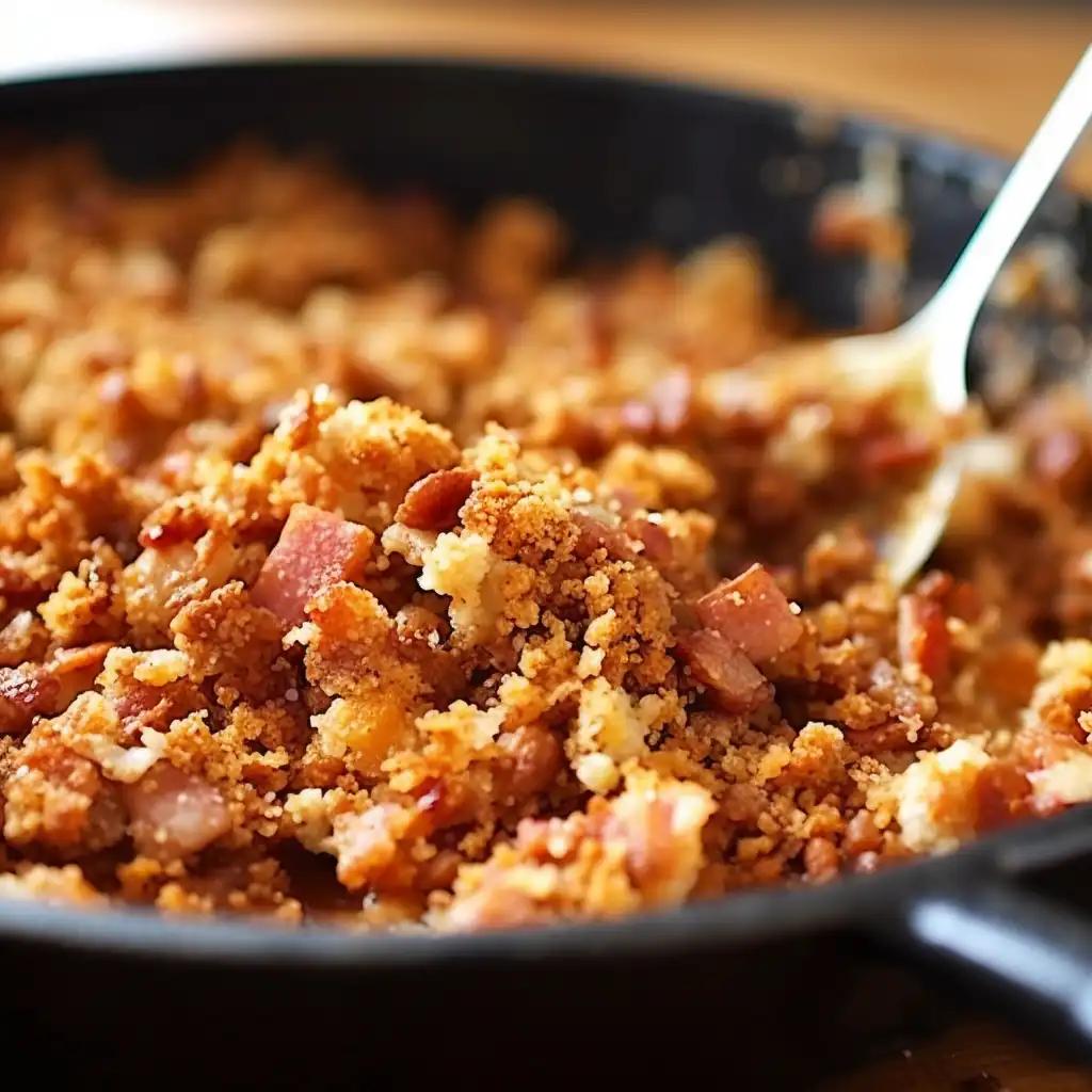 Part 4: Crispy Bacon Crumble ToppingIngredients for Crispy Bacon Crumble Topping:1 cup of burnt bacon bits1/2 cup of breadcrumbs2 tablespoons of melted butter1 teaspoon of dried herbs (such as thyme, oregano, or rosemary)Salt and pepper to tasteSteps to create the ultimate topping:1. Preheat your oven to 350°F (175°C) and line a baking sheet with parchment paper.2. In a bowl, combine the burnt bacon bits, breadcrumbs, melted butter, dried herbs, salt, and pepper. Mix well to ensure everything is evenly coated.3. Spread the mixture onto the prepared baking sheet in an even layer.4. Bake for about 15 minutes or until the crumble topping is crispy and golden brown.5. Allow the crispy bacon crumble topping to cool before using it as a delicious garnish for salads, soups, mac and cheese, or any dish that could use a crunchy and smoky twist.