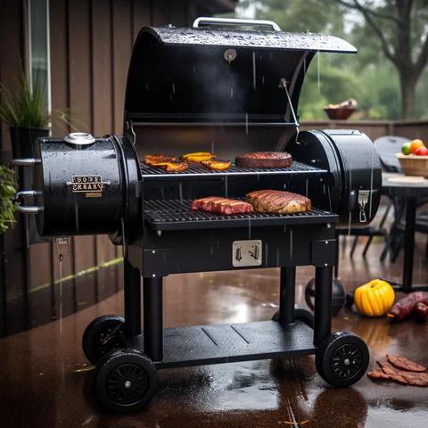 Position your grill under a sheltered spot, like a patio awning or overhang, to minimize direct exposure to rain. This provides a degree of protection during cooking and shutdown.1. Grill Cover PlacementBefore shutdown, ensure the grill cover is securely in place. This prevents rainwater from seeping into the grill's components and ensures a dry interior for your next grilling session.2. Dry Before CoveringBefore covering your grill, make sure it's completely dry. Wipe down any wet surfaces to prevent moisture from getting trapped under the cover.3. Ventilation MattersIf your grill has vents, ensure they're not obstructed by the cover. Proper ventilation prevents condensation buildup inside the grill.4. Regular InspectionAfter the rain has subsided, perform a quick visual inspection to ensure no water has pooled on the grill or seeped in through any gaps.